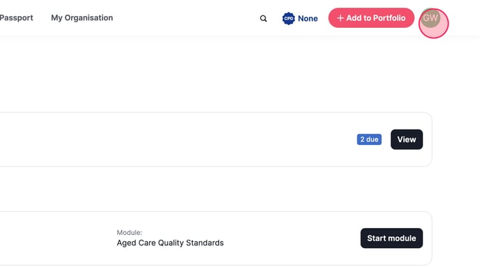 2. Click on your initials in the top right hand side menu