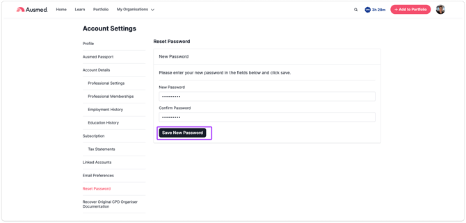 📝 Note: If your organisation uses Single Sign-On (SSO), updating your password in Ausmed won’t change your SSO login details. You’ll still need to log in with your SSO credentials.