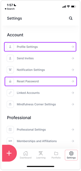 3. Tap Profile Settings to update your email address or Reset Password to change your password.